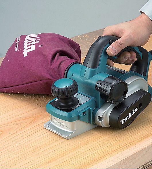 Plaina 82mm, com regulação da altura de corte através do punho dianteiro.