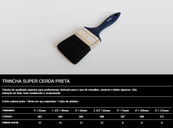 TRINCHA SUPER PRO - CERDA PRETA 100% NATURAL 2,5" (65MM)