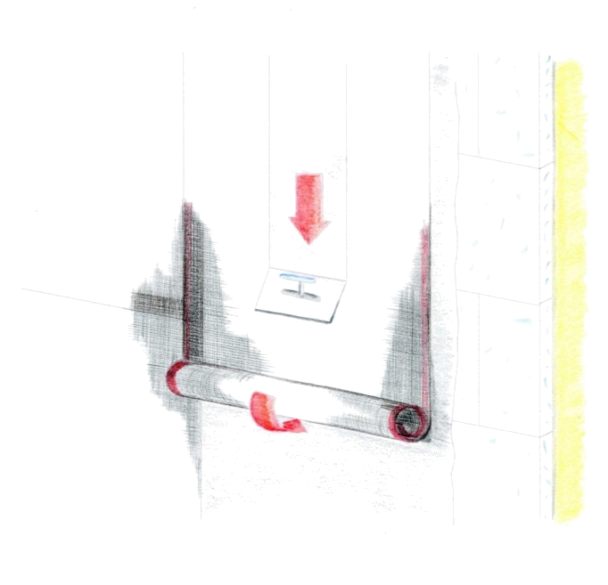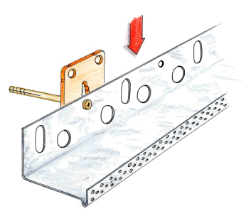 Estes perfis não devem ser fixos com cavilhas ou pregos, mas sim colados ao painel isolante com massa de colagem, pressionando o perfil contra a esquina de forma a fluir a massa de colagem em excesso através dos furos dos perfis.