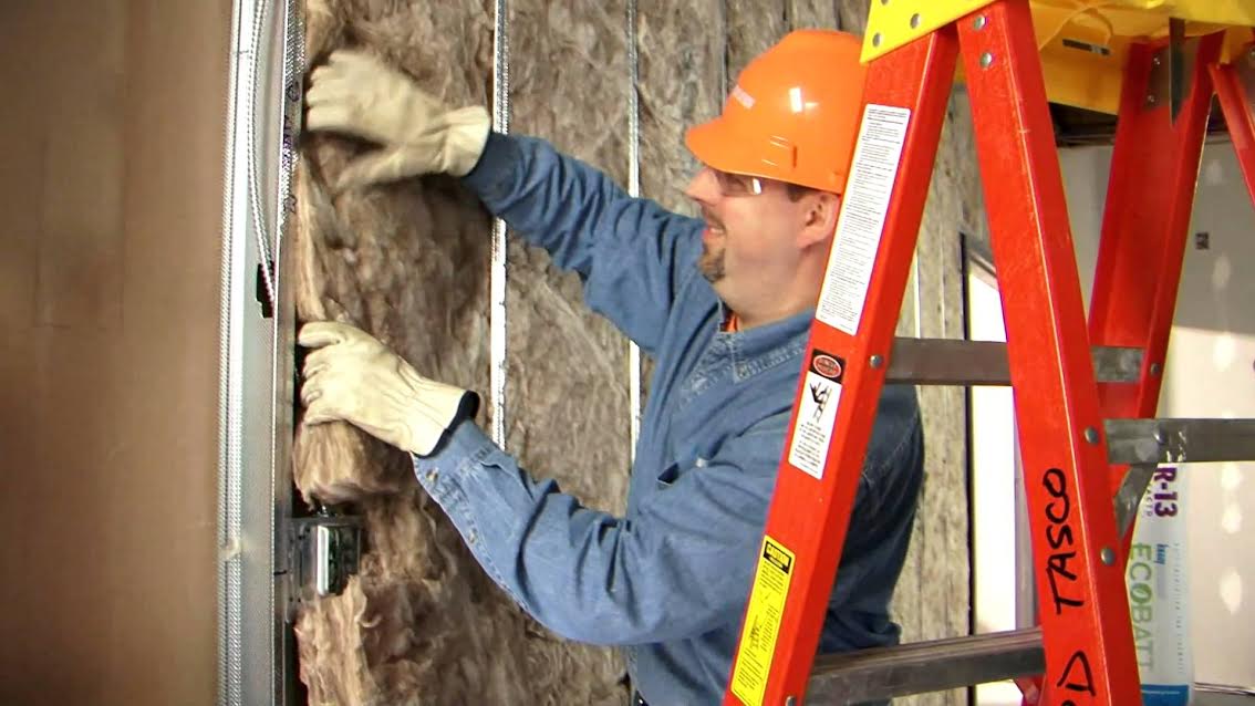 Uma vez terminada a estrutura e antes de fixarmos as placas, pode colocar-se a lã como isolamento entre os perfis.