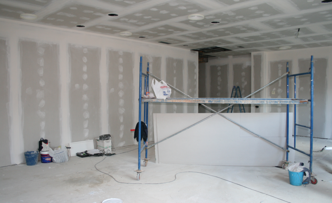 Reestruturação de espaços interiores recorrendo aos sistemas construtivos em gesso cartonado.